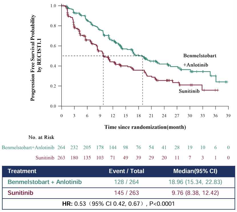 [2].Xinan Sheng,et al.Anlotinib in combined with anti-PD-L1 antibody Benmelstobart(TQB2450)versus sunitinib in first-line treatment of advanced renal cell carcinoma(RCC)-A randomized,open-label,phase III study(ETER100).ESMO 2024 Abstract LBA76.