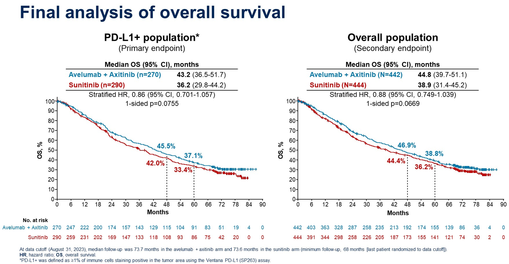 [1].Robert J.Motzer,et al.Avelumab+axitinib vs sunitinib in patients(pts)with advanced renal cell carcinoma(aRCC):Final overall survival(OS)analysis from the JAVELIN Renal 101 phase 3 trial.ASCO 2024.4508.