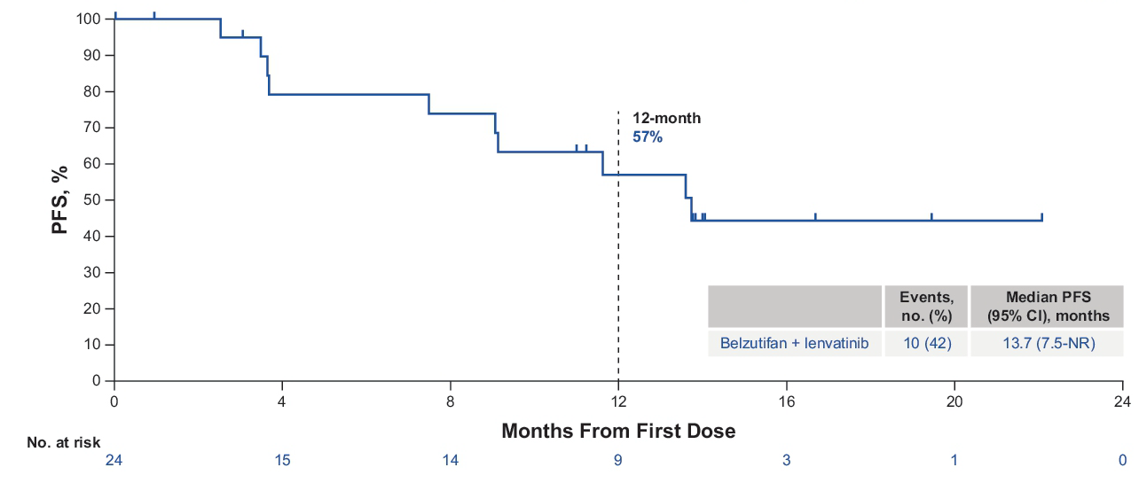[12].Sheng X,Guo H,Yao X,et al.Belzutifan plus lenvatinib(len)for Chinese patients(pts)with previously treated advanced clear cell renal cell carcinoma(ccRCC):Preliminary results of cohort 1 of the phase 1 LITESPARK-010 study[J].ASCO 2024.4537
