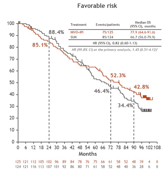 [4].Tannir NM,Escudier B,McDermott DF,et al.Nivolumab plus ipilimumab(NIVO+IPI)vs sunitinib(SUN)for first-line treatment of advanced renal cell carcinoma(aRCC):Long-term follow-up data from the phase 3 CheckMate 214 trial.2024 ASCO GU,Abstr 363.