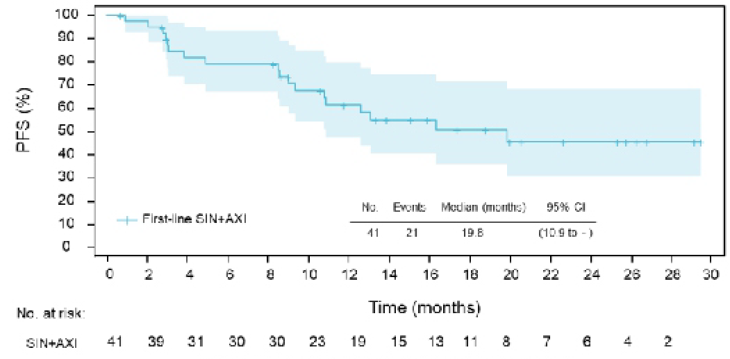 △信迪利单抗联合阿昔替尼治疗组的ORR和PFS分析