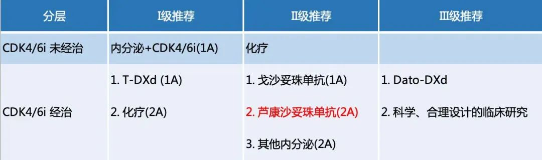 基于该研究数据,《CSCO BC指南2025》新增芦康沙妥珠单抗为CDK4/6i经治的HR+/HER2低表达晚期乳腺癌Ⅱ级推荐方案,2A类证据。此次纳入指南标志着芦康沙妥珠单抗在HR+/HER2低表达领域的拓展开始,为患者的治疗带来了新的希望,标志中国创新的TROP2 ADC发展已经达到了国际先进水平,引领着新的开拓潮流。