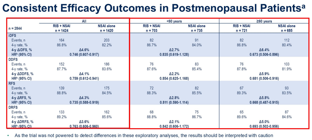 [7]Kevin Kalinsky,et al.Efficacy and safety of ribociclib(RIB)+nonsteroidal aromatase inhibitor(NSAI)in NATALEE:Analysis across menopausal status and age..ASCO 2025;Abstract#516