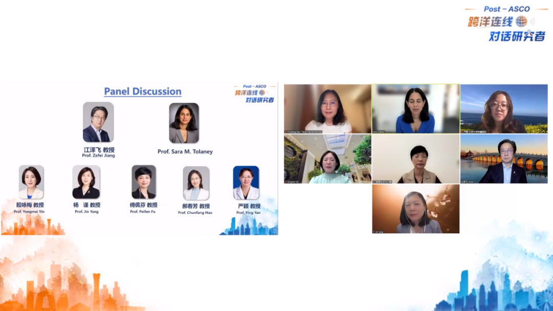 在此次“Post ASCO跨洋连线,对话研究者”会议伊始,江泽飞教授对Sara M.Tolaney教授于ASCO会议披露DB-09研究数据表示赞赏,对中国研究团队贡献了约1/4的病例数据表示肯定,并表示参与研究的许多中国患者获悉DB-09研究取得阳性结果后都感到振奋与自豪,一方面是有机会得到了当前最佳的治疗方案,另一方面为科学发展做出了贡献。江泽飞教授对此次中外专家关于DB-09的深入对话充满期待,希望通过透彻的学习与讨论,为未来更科学地设计临床研究,解决临床问题开拓思路。