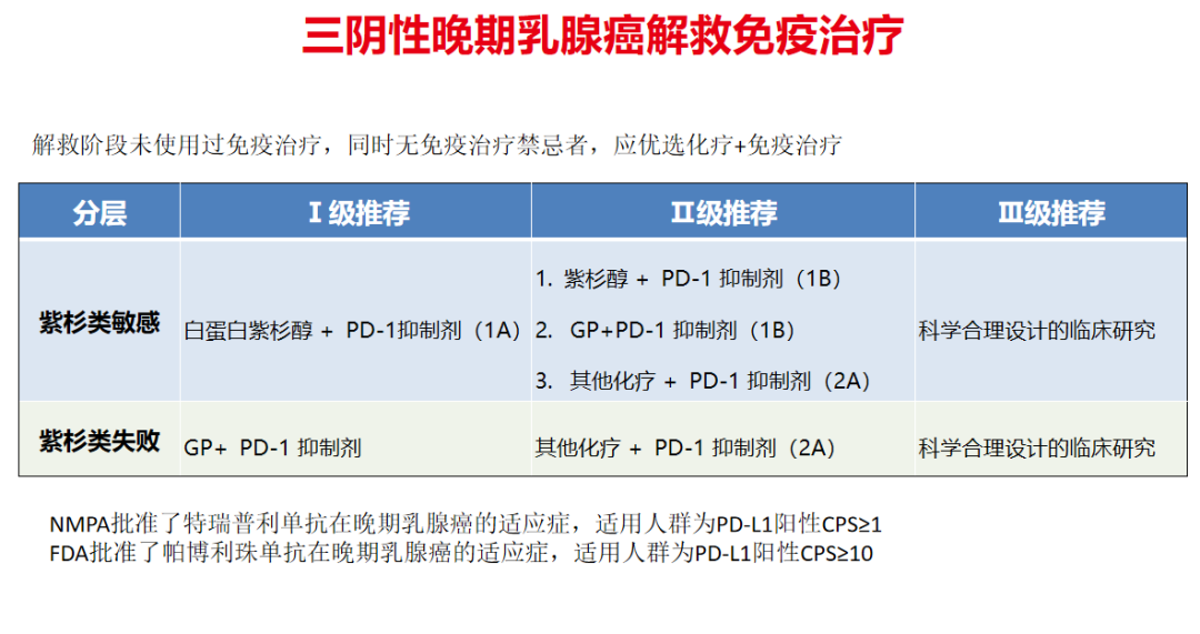 图9.《CSCO BC诊疗指南(2025)》三阴性晚期乳腺癌解救免疫治疗推荐
