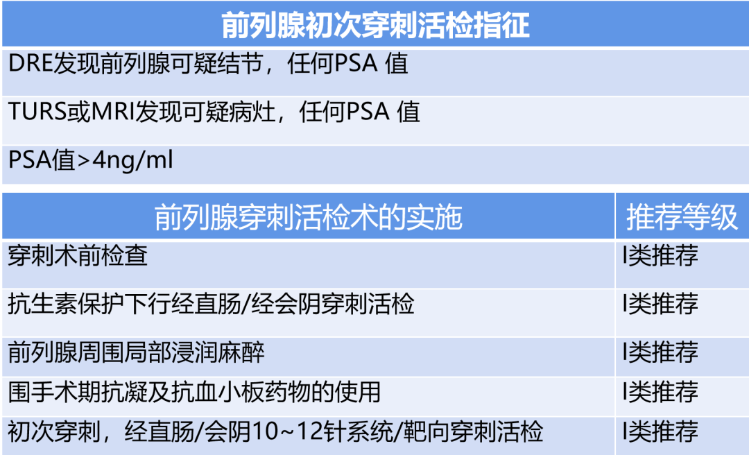 初筛异常男性按照以下推荐进行前列腺穿刺确诊: