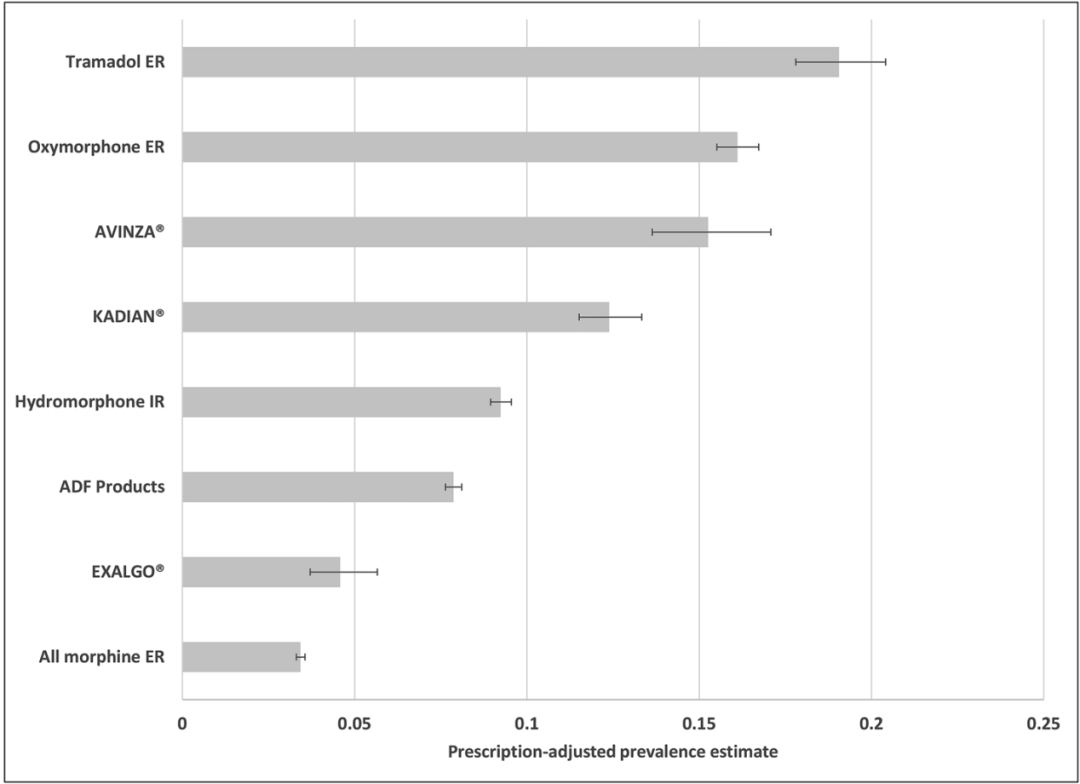 氢吗啡酮缓释片滥用支持-劝阻比(ERo=1.98)远低于普通氢吗啡酮(ERo=5.18)。(见图7)