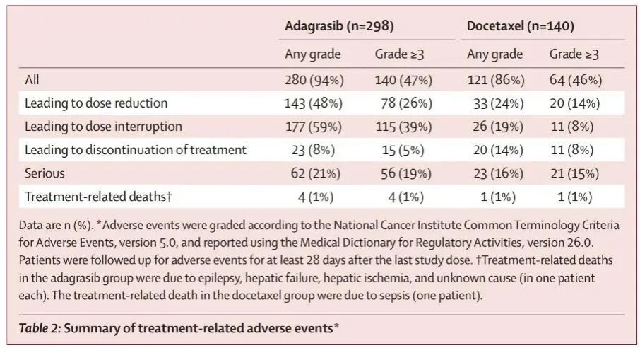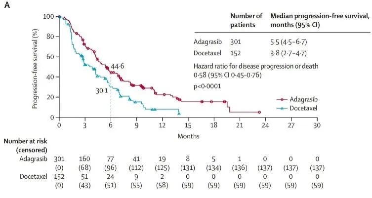 研究结论:adagrasib相较于多西他赛在经治且携带KRAS G12C突变的非小细胞肺癌患者中展示了有统计学意义的PFS的提高,没有新的不良信号。