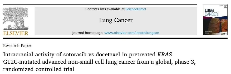 同期,Lung Cancer杂志公布了比较索托拉西布与多西他赛治疗携带KRAS G12C突变患者的颅内疗效数据,即CodeBreak-200研究颅内患者数据。
