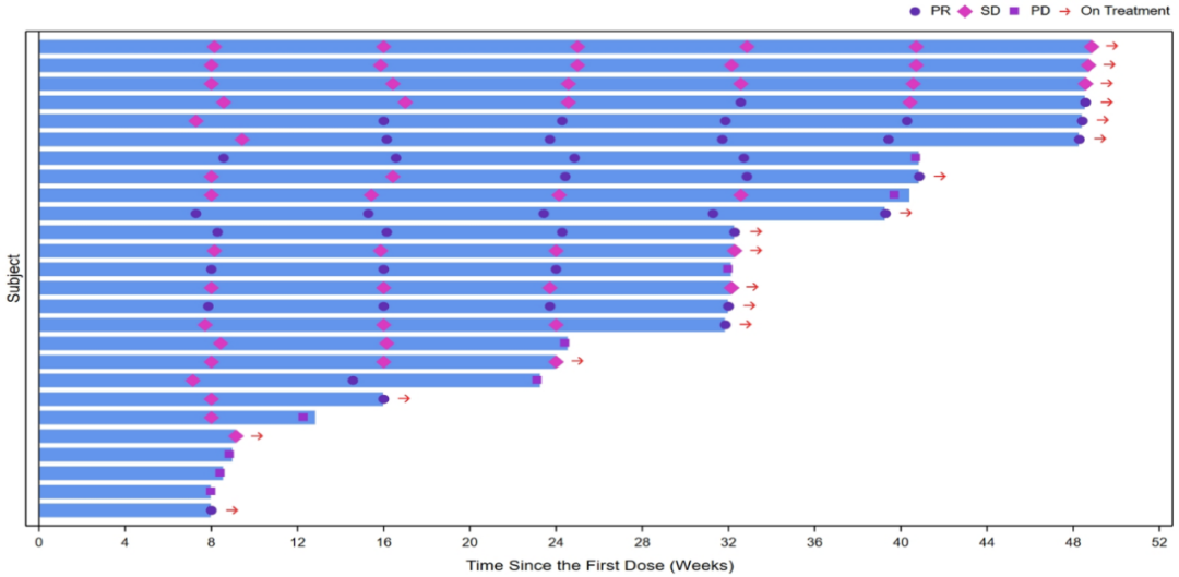 图2.单药治疗的肿瘤最佳缓解瀑布图(RECIST v1.1)