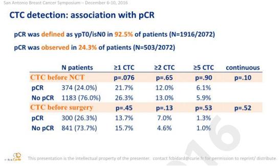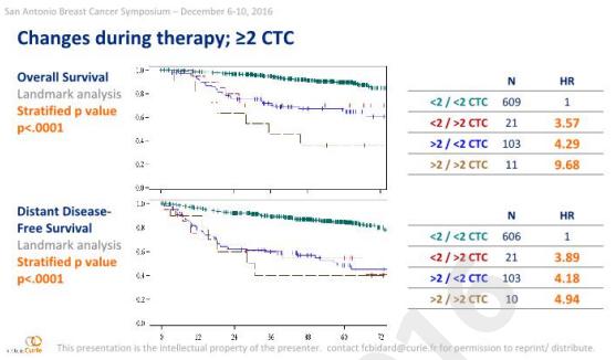 本次圣安东尼奥会议报告了一项来自法国的国际荟萃分析,旨在探索CTC计数在早期乳腺癌新辅助化疗(NCT)疗效与预后评估中的作用。本研究收集了全球16个中心,21项研究的数据,将2156例行新辅助化疗的早期乳腺癌患者生存数据(包括发表与未发表的)进行汇总。主要研究终点为总生存(OS),次要研究终点为无远处疾病生存(DDFS)、无局部复发生存(LRFI)、病理完全缓解(pCR),并考察CTC的阳性阈值以及在预后模型中加入CTC检测的临床价值。