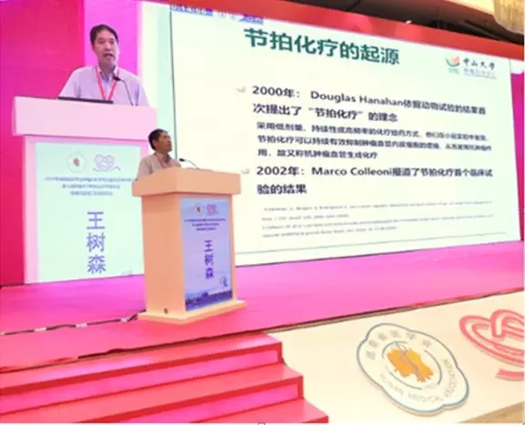 中山大学肿瘤防治中心的王树森教授向我们介绍了“HR阳性晚期乳腺癌如何选择一线/二线内分泌治疗”。针对HR阳性乳腺癌,一线推荐CDK4/6抑制剂联合AI/氟维司群方案。CDK4/6抑制剂通过选择性抑制细胞周期蛋白CDK4/6,恢复了CyclinD1对细胞周期的控制,阻断肿瘤细胞的恶性增殖。Palbociclib(哌柏西利)是首个FDA获批的CDK4/6抑制剂。PALOMA-2临床试验表明Palbociclib联合AI治疗的无疾病生存期(PFS)显著高于AI对照组。此外,号称“节拍王子”的王树森教授还介绍了节拍化疗在乳腺癌中的应用。相比于传统化疗,节拍化疗可延长疾病控制时间、降低化疗毒副作用和调节患者免疫系统等。卡培他滨是节拍化疗的代表性药物。