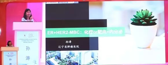 辽宁省肿瘤医院乳腺内科的孙涛主任向我们介绍“ER+/HER2-晚期乳腺癌:化疗还是靶向联合内分泌”。 针对ER+/HER2-晚期乳腺癌,目前国内外的一致共识推荐首选内分泌治疗。然而,真实世界中化疗的使用是不可避免的。一线化疗解救仅适用于有症状的内脏转移(肿瘤负荷高、肿瘤进展迅速和内脏危象)和内分泌治疗耐药的患者;除此之外的患者应该首选内分泌治疗。在绝经前女性患者中,哌柏西利(Palbociclib)联合依西美坦和卵巢功能抑制对比卡培他滨能显著延长PFS。此外,mTOR抑制剂、AKT抑制剂联合AI也是内分泌治疗的备选方案。