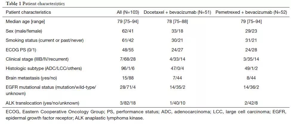 前言:培美曲塞及多西他赛是晚期肺癌患者一线化疗的重要细胞毒药物,联合贝伐珠单抗治疗可以给患者带来进一步获益。由于高龄患者耐受性较差,细胞毒类药物往往单独应用。既往研究显示,培美曲塞或多西他赛联合贝伐珠单抗均具有一定的疗效,两者相比,哪种联合方案更优呢?近期,Translational Lung Cancer Research通过一项前瞻性II期临床研究探索了这一问题。