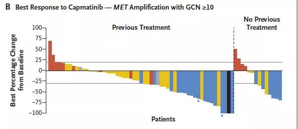 图5. 扩增患者接受卡马替尼治疗后的瀑布图