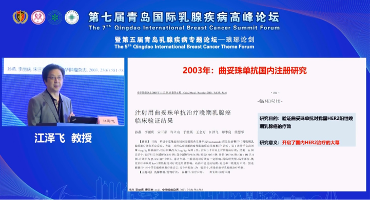 2001~2005年,“积累经验,找寻证据”。江教授及宋三泰教授为主的团队,总结前人及外来的经验,率先开展了ER阳性乳腺癌辅助内分泌治疗的前瞻性研究;此外,在2001年即开展了BRCA1基因热点外显子突变的检测;2003年见证了赫赛汀的进口注册,验证了曲妥珠单抗的临床疗效,开启了国内HER-2治疗的大幕。