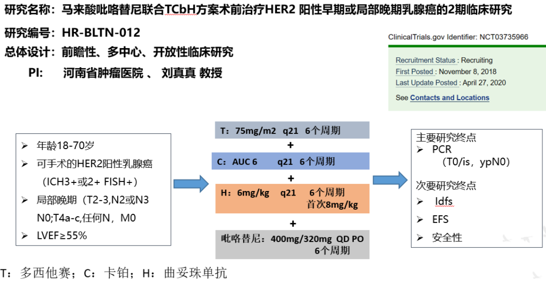 马来酸吡咯替尼联合TCbH方案术前治疗HER2 阳性早期或局部晚期乳腺癌的II期临床研究