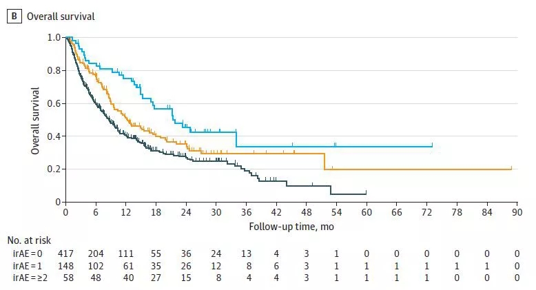 导读:近期,JAMA Oncology发表了一项多中心研究,为免疫相关不良反应(irAE)与免疫检查点抑制剂(ICI)的疗效之间的相关性提供了真实世界中的证据。《肿瘤瞭望》对全文进行编译,以飨读者。