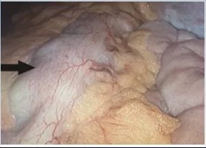 在支架置入后14天之后,可进行双镜序贯治疗下的第二阶段,即腹腔镜下肿瘤切除(图4)。在间隔期需进行以下三个方面的工作:①全身状态的调整:通过肠内营养改善全身状态,从而提高手术耐受性;②肠道水肿的消退:这有利于手术切口的安全吻合;③肿瘤分期:精准的肿瘤分期有利于后续治疗策略的制定。