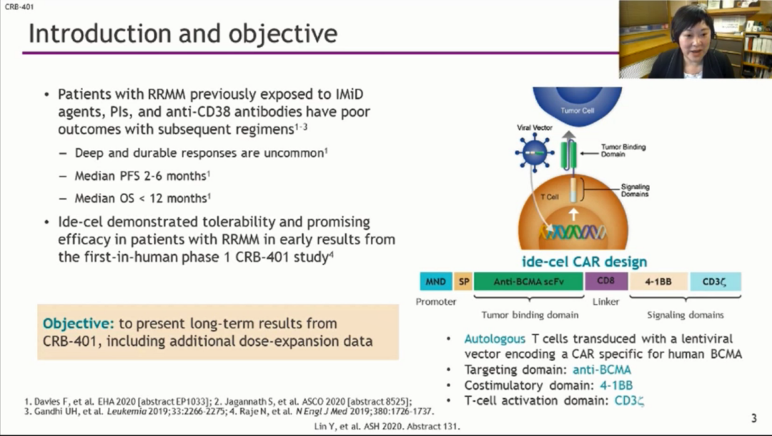 王亮教授:BCMA目前已成为CAR-T治疗多发性骨髓瘤的重要靶点,在本次ASH大会上您团队开展的一项研究探讨了CT053在RRMM患者中的疗效及安全性。在此能否请您详细谈一谈该研究?