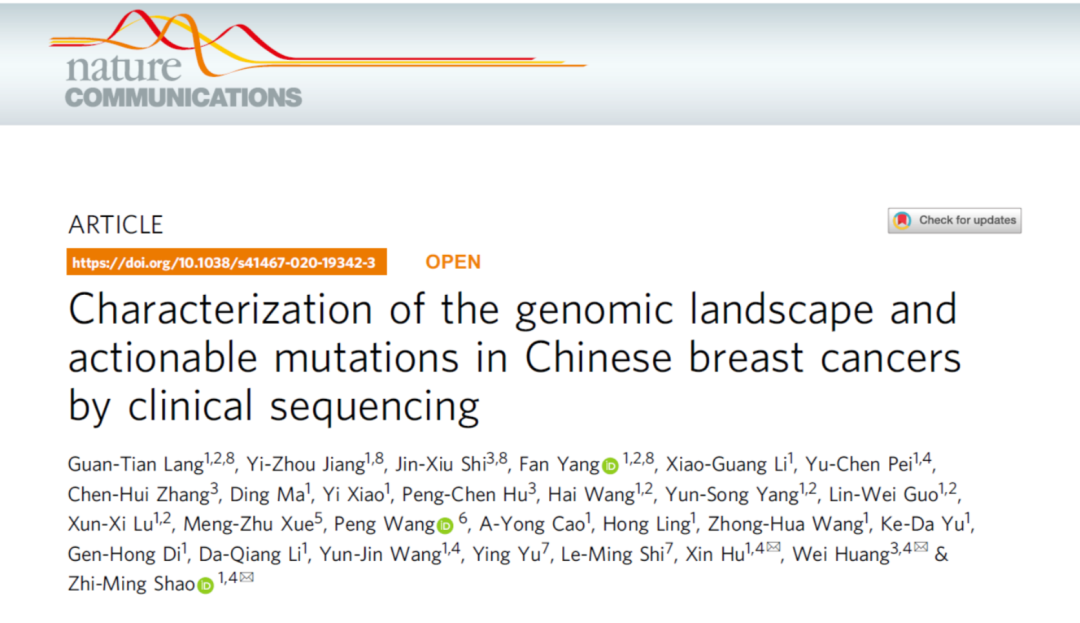 TNBC是一组异质性疾病,根据中国人TNBC的数据,2019 年,复旦大学附属肿瘤医院团队“绘制”出全球最大的TNBC多组学图谱并提出了“复旦分型”(Cancer Cell, 2019),为TNBC治疗靶点的探寻提供了理论基础。此后,FUTURE的 “伞形”临床研究初步提示,应用复旦分型的精准分类,为患者选用合适的治疗方案可以显著提高难治性TNBC的疗效(Cell Research, 2020)。2020年复旦团队绘制出国内首个,最大规模的单中心中国人群乳腺癌基因突变图谱并在2020年11月10日《Nature Communications 》发表。该图谱有效填补了国人乳腺癌基因图谱的“空白”,为全面探索中国人群乳腺癌精准治疗靶点及治疗提供了良好基础。