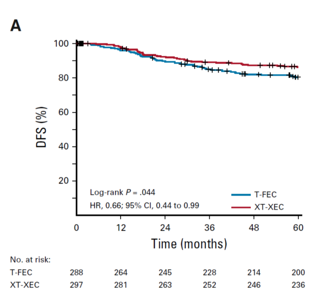 CBCSG010研究是当前全球唯一针对TNBC探索辅助治疗中蒽环和多西他赛序贯方案的基础上同时联合使用卡培他滨后显示增效的临床试验,也是中国乳腺癌辅助治疗研究领域首个登顶JCO的临床研究,为TNBC的辅助化疗治疗策略增加了选择,有望改变临床治疗格局。CBCSG-010研究结果提示,在TNBC的术后辅助治疗中XT-XEC方案,可将患者的5年DFS提高到86.3%,相对风险降低34%。