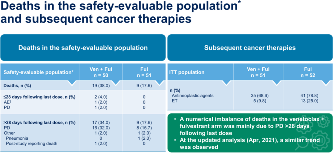 从VERONICA研究初步分析结果看,VEN联合FUL未改善CDK4/6抑制剂难治晚期乳腺癌患者的CBR和PFS获益,相关生物标记物的探索分析正在进行中。