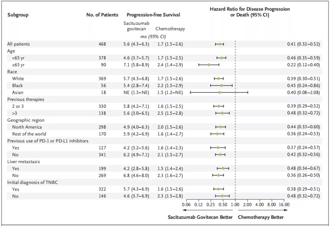 图3. ASCENT研究PFS亚组分析[4]