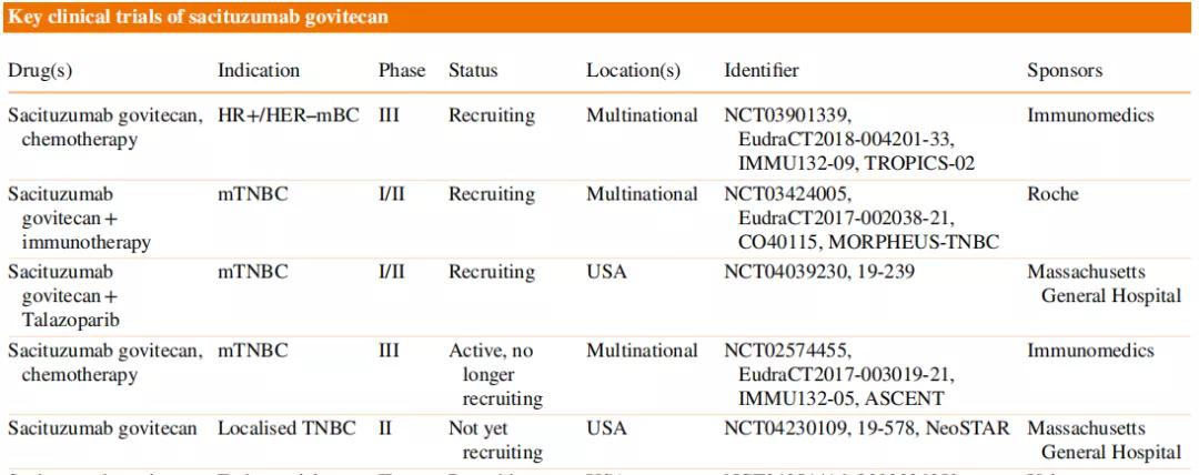 表1. 乳腺癌领域戈沙妥珠单抗的关键试验[1]