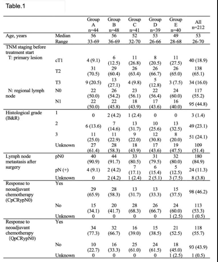 传统观念上,HER2阳性乳腺癌与预后差有关。然而,随着HER2靶向治疗的发展,HER2阳性乳腺癌的预后明显改善。此外,HER2的双阻断,如曲妥珠单抗和拉帕替尼,与HER2+原发性乳腺癌化疗存在的单阻断相比,有望增加病理完全缓解(pCR)率。我们之前报道了Neo-LaTH研究的结果(试验号:UMIN 000007576);46%的患者(98/212)达到了pCR,其中62%ER-和34%ER+的患者达到了ypN0(CpCRypN0),术后5年长期随访成功。在这里,我们报告了Neo-LaTH研究中纳入患者的生存结果。