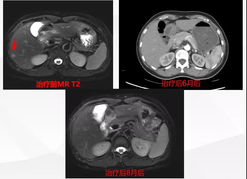 给予T-DM1治疗。治疗6个月后复查MR显示脑、肝、骨转移瘤均较前明显缩小,达到部分缓解(PR)(图2)。目前PFS已达10+个月。
