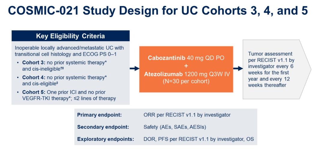 卡博替尼(C)联合阿替利珠单抗(A)治疗尿路上皮癌(UC):来自COSMIC-021研究队列3、4、5的结果
