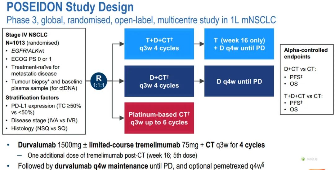 在2022年ESMO大会上,莎拉·坎农癌症研究所肺癌研究项目主任Melissa L.Johnson报告了III期POSEIDON试验(NCT03164616)的中位随访约4年后总生存(OS)最新分析结果。