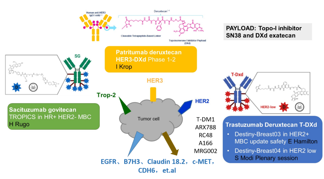 作为一种结合传统化疗和单克隆抗体优势的药物,抗体药物偶联物(antibody-drug conjugates,ADC)自问世以来就给乳腺癌患者带来了显著的生存获益,也改写了乳腺癌患者的治疗格局。而随着对ADC的进一步开发和验证,治疗获益人群将进一步的扩大[1,2]