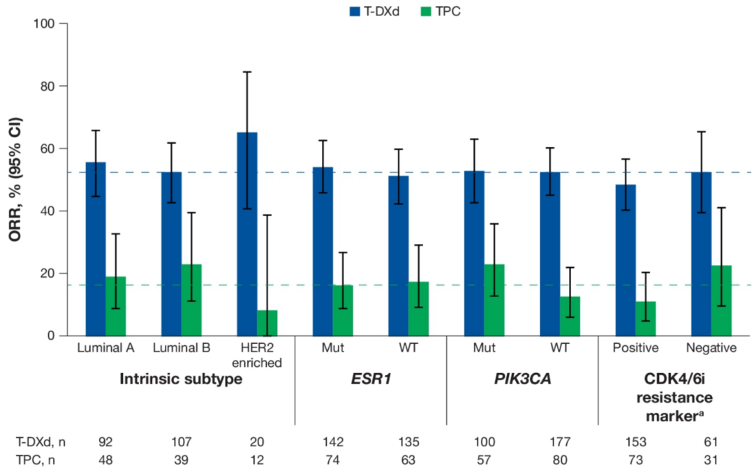 △DB-04研究中:不同内在亚型、ESR1、PIK3CA和CDK4/6i耐药标志物状态患者的ORR