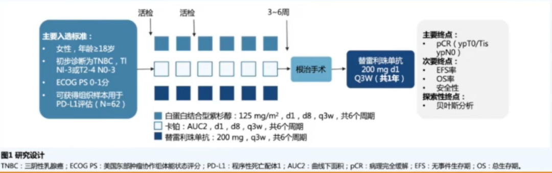 cTRIO是一项多中心、开放标签、Ⅱ期研究,目的是评估替雷利珠单抗联合白蛋白紫杉醇和卡铂新辅助治疗后辅助继续使用替雷利珠单抗对早期TNBC的有效性和安全性。