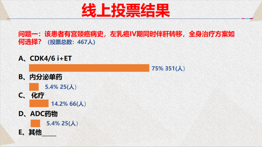 网上医生投票结果揭晓:绝大部分网上医生投票建议选择CDK4/6抑制剂+ET。