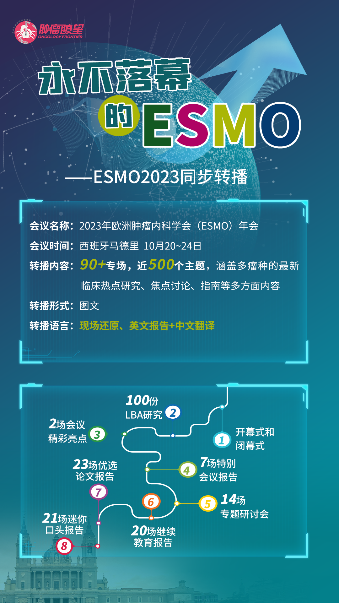 2023年欧洲肿瘤内科学会年会(ESMO 2023)于当地时间10月20~24日在“欧洲之门”的西班牙首都马德里成功举行。作为肿瘤学界的“欧冠盛典”,ESMO大会云集全球各地的肿瘤学大咖,共享最新的临床肿瘤学研究成果和诊疗经验,并将深度影响未来的临床实践。