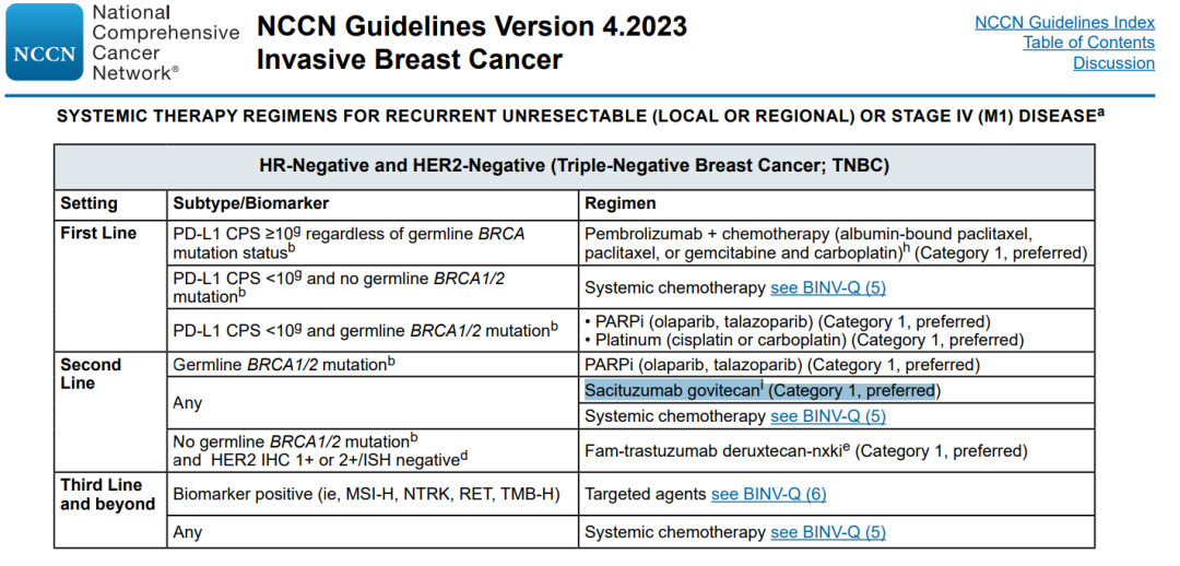 《NCCN乳腺癌临床实践指南2023 v4》TNBC治疗路径