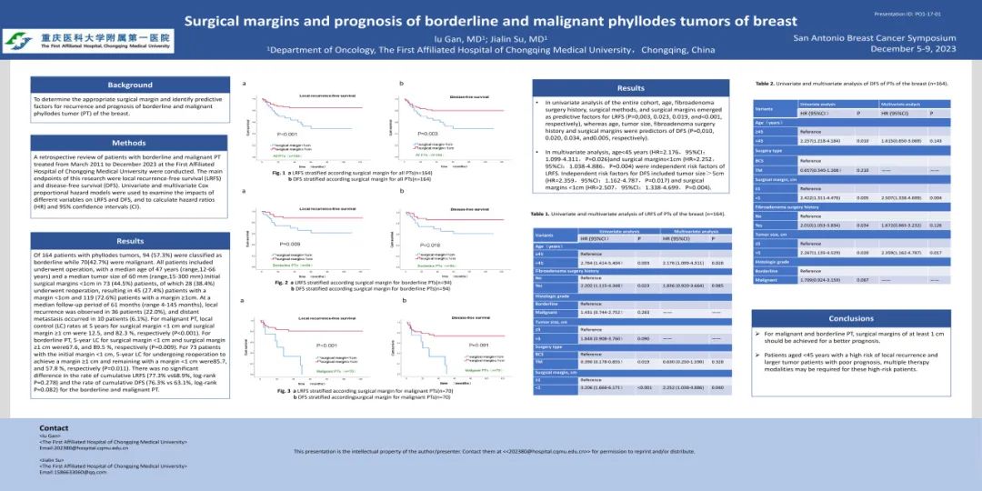 编者按:圣安东尼奥乳腺癌研讨会(SABCS)是世界上规模最大,最具影响力的国际性会议。第46届圣安东尼奥乳腺癌研讨会(SABCS)于当地时间2023年12月5日至9日在美国得克萨斯州圣安东尼奥举行。重庆医科大学附属第一医院甘露教授团队的一项研究入选了此次大会poster(海报编号:P01-17-01),本文特进行介绍。