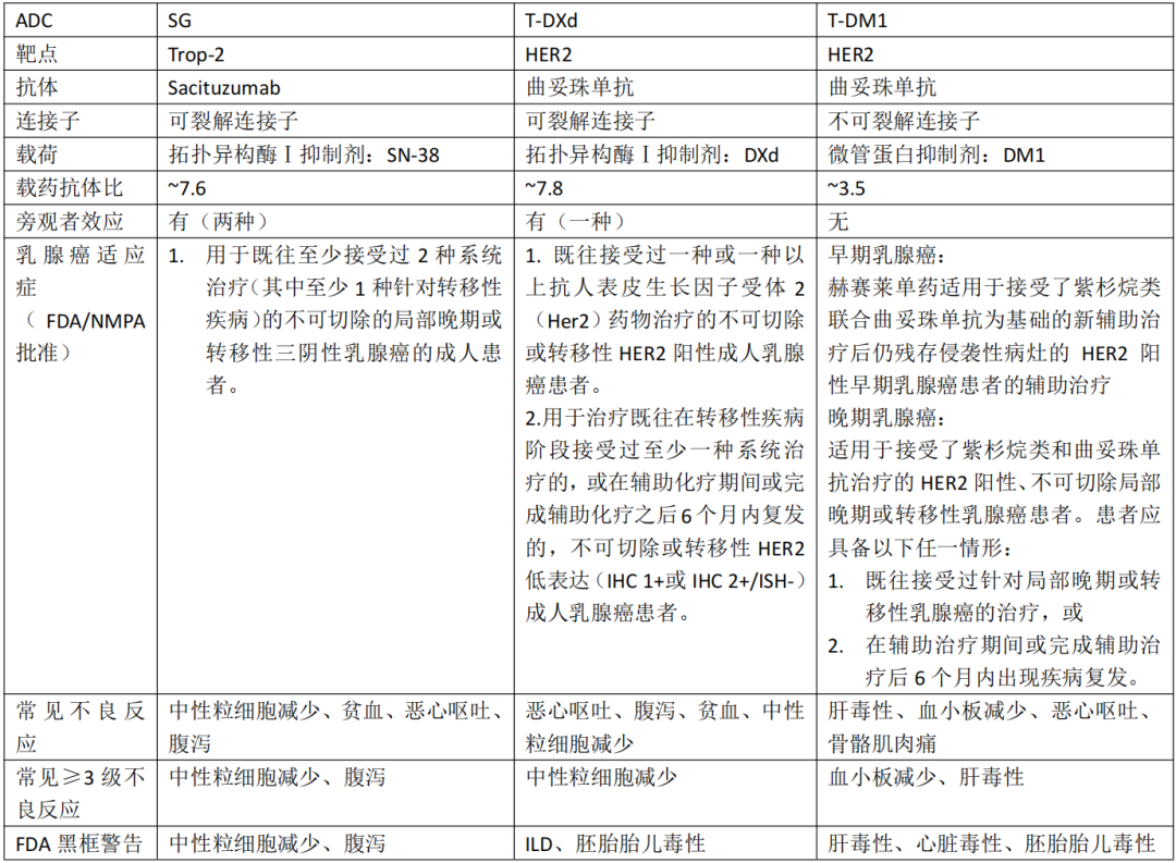 乳腺癌已获批的三种ADC[2]