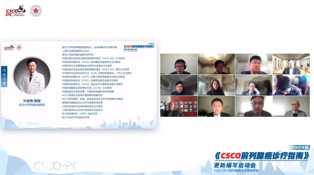 会议开始,由CSCO前列腺癌专委会主任委员、CSCO前列腺癌诊疗指南编写组组长、复旦大学附属肿瘤医院叶定伟教授做了精彩致辞:在指南全体编委的努力下,《CSCO前列腺癌诊疗指南》已成为我国前列腺癌领域最重要和最权威的参考指南之一,在过去的时间里非常感谢指南核心编委不曾懈怠,勤恳敬业,笔耕不辍地完成每年一度的更新工作,把最新、最前沿的医学证据纳入在指南中,并基于中国人群的循证医学证据,不断影响和指导中国前列腺癌患者的临床实践。2024版的更新工作,将继续遵循CSCO指南的核心精神,秉持“发病激增,早筛早诊;局限高危,治疗强化;更新场景,与时俱进;精准检查,丰富选择”的理念,将国内外前列腺癌诊疗的最新进展进行充分讨论,最终打造出最适合中国前列腺癌患者的指南!