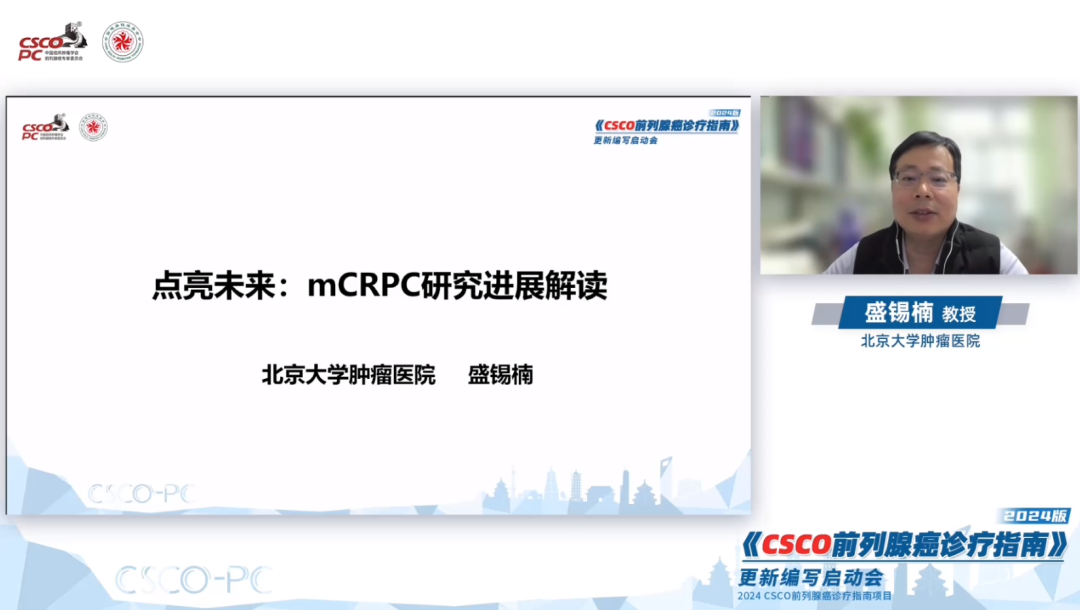 北京大学肿瘤医院盛锡楠教授分享了《mCRPC研究进展解读》:mCRPC的治疗应与时俱进,需要结合前序治疗的方案考虑mCRPC的全病程管理,进行个体化治疗,在制定治疗策略时尽量避免抗雄药物之间的互换;PARP抑制剂、核素治疗及免疫联合治疗为前列腺癌治疗带来了新的选择和希望,如何筛选出最佳获益人群是未来需要探索的方向;前列腺癌药物研发朝多靶点(ADC、PROTAC、CART)更精准的方向发展,以期为晚期前列腺癌带来更多治疗选择。