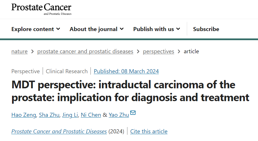 Zeng H,Zhu S,Li J,Chen N,Zhu Y.MDT perspective:intraductal carcinoma of the prostate:implication for diagnosis and treatment.Prostate Cancer Prostatic Dis.Published online March 8,2024.doi:10.1038/s41391-024-00818-y
