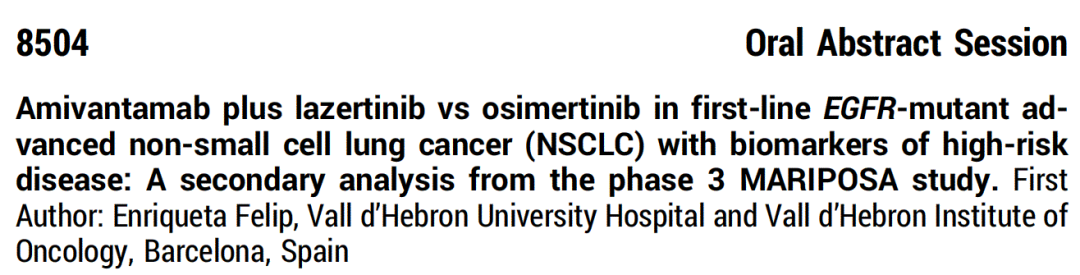 埃万妥单抗联合Lazertinib相较于奥希替尼一线治疗EGFR突变阳性晚期非小细胞肺癌患者的疗效及安全性:III期MARIPOSA研究的第二次分析及标志物分析(摘要号:8504)