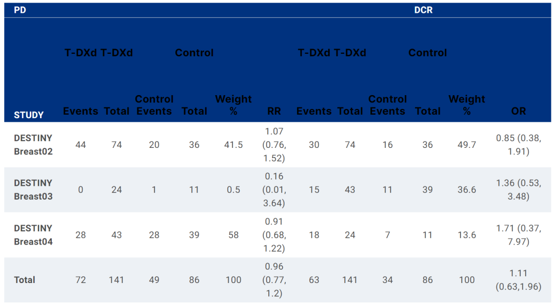 △T-DXd治疗脑转移萃分析中的疾病进展和疾病控制情况